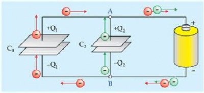 haverá movimentação de elétrons nos fios que unem os capacitores até que estes